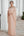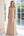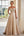Vestido largo fruncido con hombros descubiertos y corte en A color champán para madre de la novia