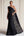 Vestido de invitada de boda floral halter escalonado negro de una línea con dobladillo desmontable