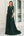 Elegante vestido largo de gasa madre de la novia con escote en V de color verde oscuro con apliques de encaje