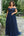 Vestido largo de tul azul marino con escote en V y manga corta