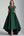 Vestido de baile militar plisado verde de satén metálico con hombros descubiertos de línea A