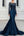 Vestido Azul Marino De Sirena De Satén Largo De La Madre De La Novia Con Bordado