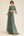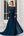 Elegante vestido largo de gasa madre de la novia con cuello de barco verde oscuro con apliques de encaje