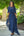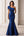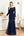 Vestido largo de satén sirena con escote en V azul marino de la madre de la novia