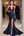 Vestido de gala con escote en V fruncido en sirena azul marino con abertura
