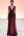 Elegante vestido de gala militar burdeos con escote en V y manga larga