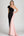 Vestido de gala de satén fruncido de un hombro negro y rubor