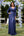 Encaje evasé azul marino y manga larga de gasa Vestido largo Madre del Birde