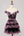 Lindo vestido de cóctel corto con tirantes finos y una línea de color rosa intenso con apliques