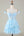 Vestido de invitada de la fiesta de bodas con volantes de la flor azul blanca una línea alta-baja