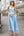 Vestido azul cielo de una línea plisada de gasa hasta el té con cordones en la espalda