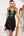 Vestido de cóctel ajustado corto con purpurina negra y pedrería