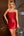 Vestido corto sin tirantes sin tirantes rojo brillante con abalorios