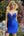 Vestido corto de lentejuelas halter azul real brillante con borla