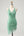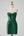 Vestido de cóctel corto con tirantes finos y funda verde brillante con espalda cruzada