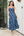 Vestido de fiesta escalonado con volantes florales verdes con abertura