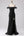 Vestido de fiesta largo de hombros fríos de sirena negro con abertura