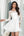 Vaina Vestido blanco con cordones de botonadura sencilla y mangas abullonadas
