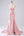 Vestido largo de fiesta con corsé de satén sin tirantes de color rosa intenso con accesorio