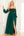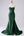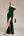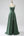 Vestido largo de fiesta con tirantes finos verde oscuro brillante con accesorio