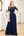 Vestido de novia plisado azul marino de cuello redondo con manga corta