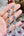 Vestido de fiesta con tirantes finos y apliques de rubor y accesorio