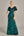 Vestido de fiesta brillante verde oscuro con hombros descubiertos y abertura