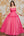 Vestido de fiesta con volantes de encaje rosa con abertura