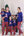 Pijamas familiares a juego de cuadros navideños con estampado azul real