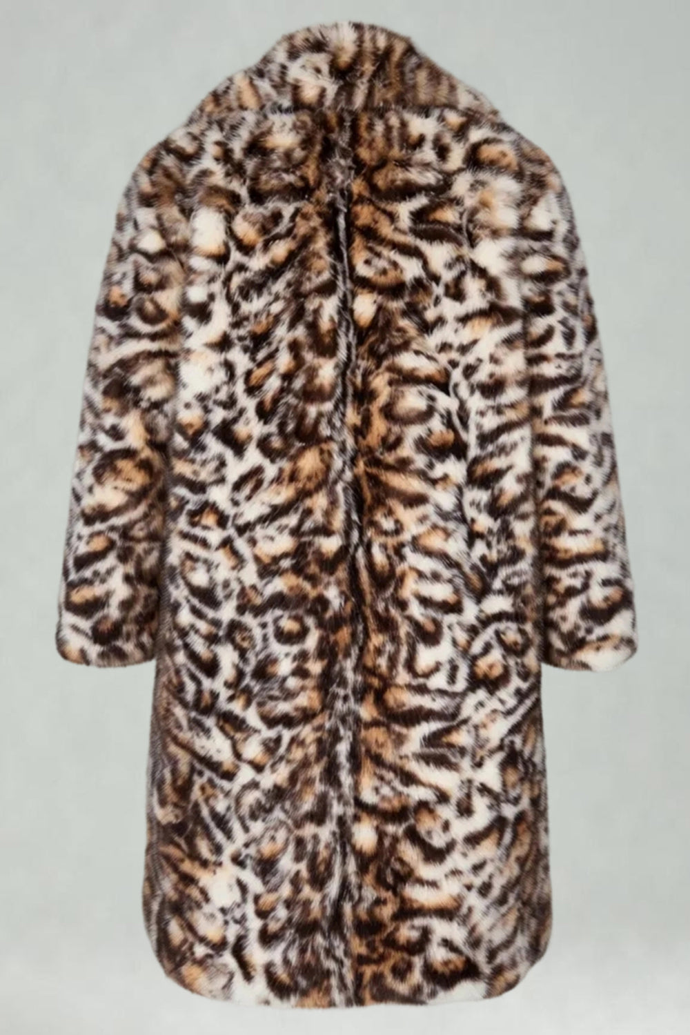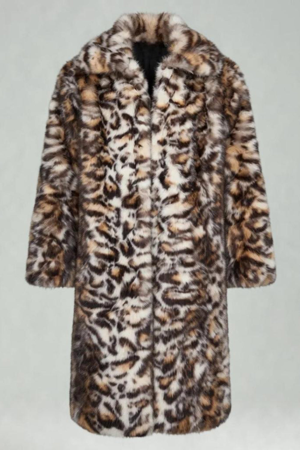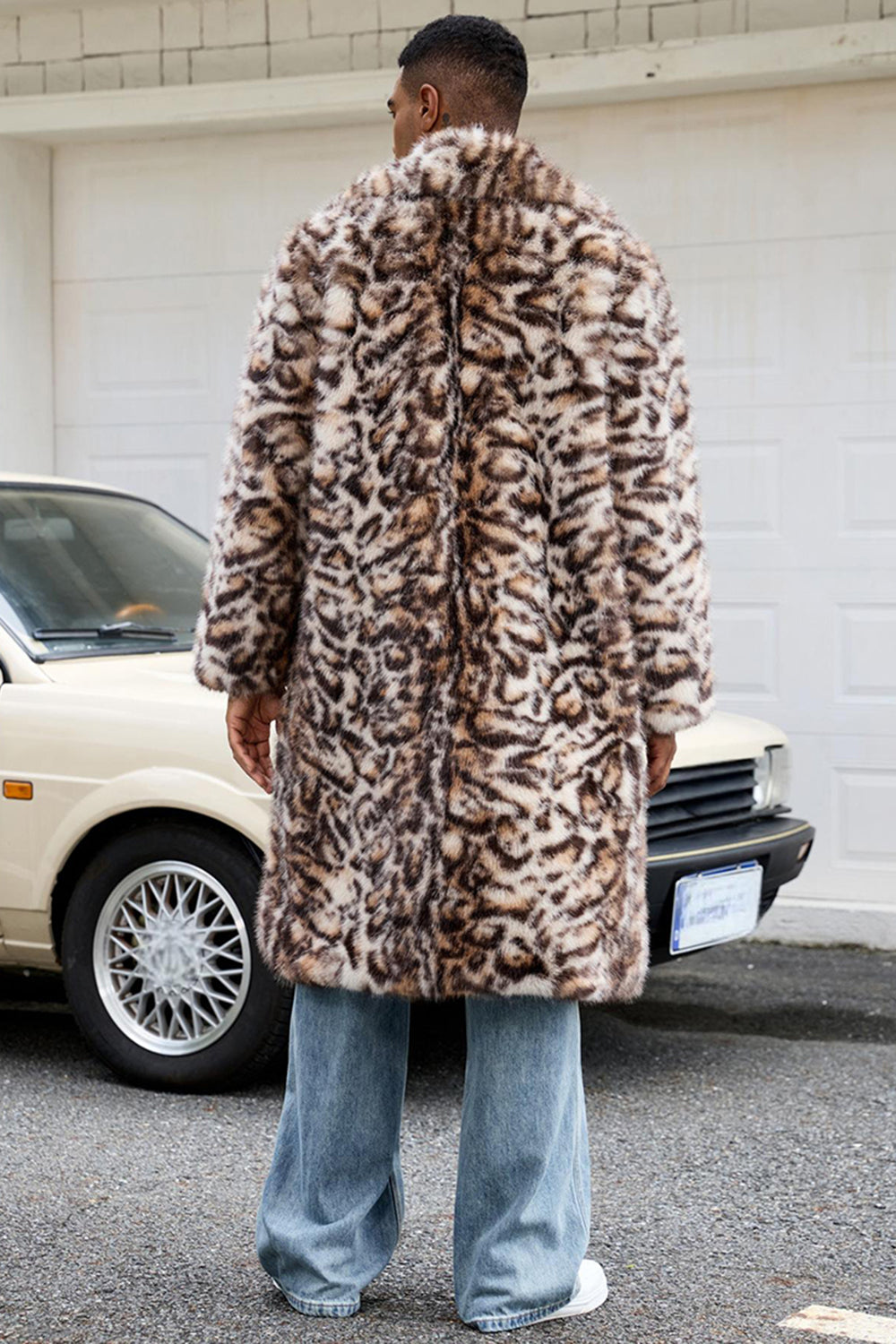 Leopardo marrón Grueso pelaje sintético Frente abierto Abrigo largo de hombre