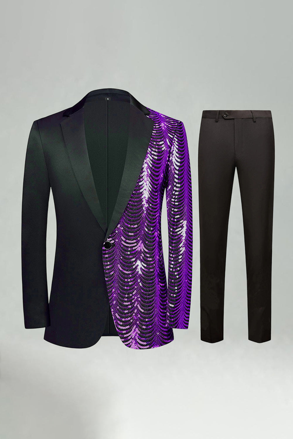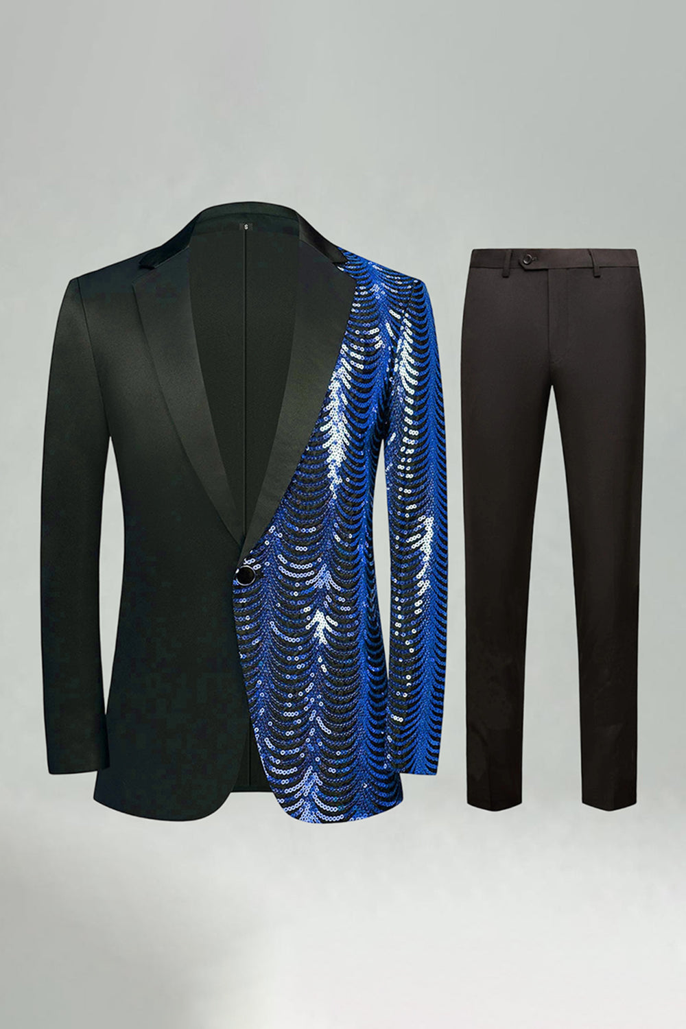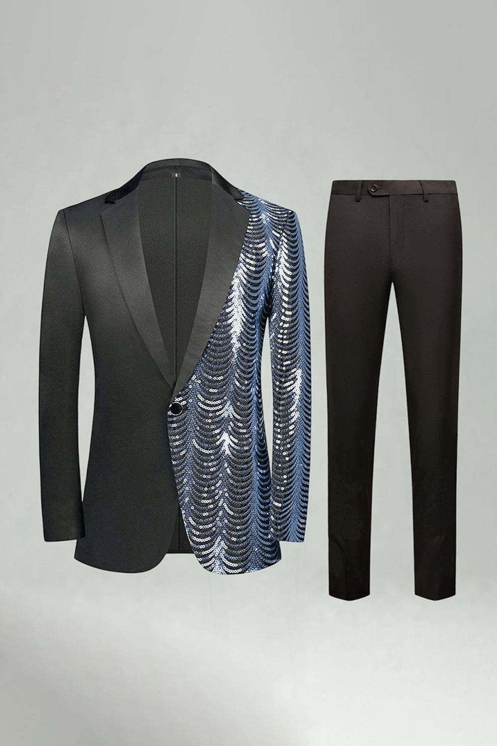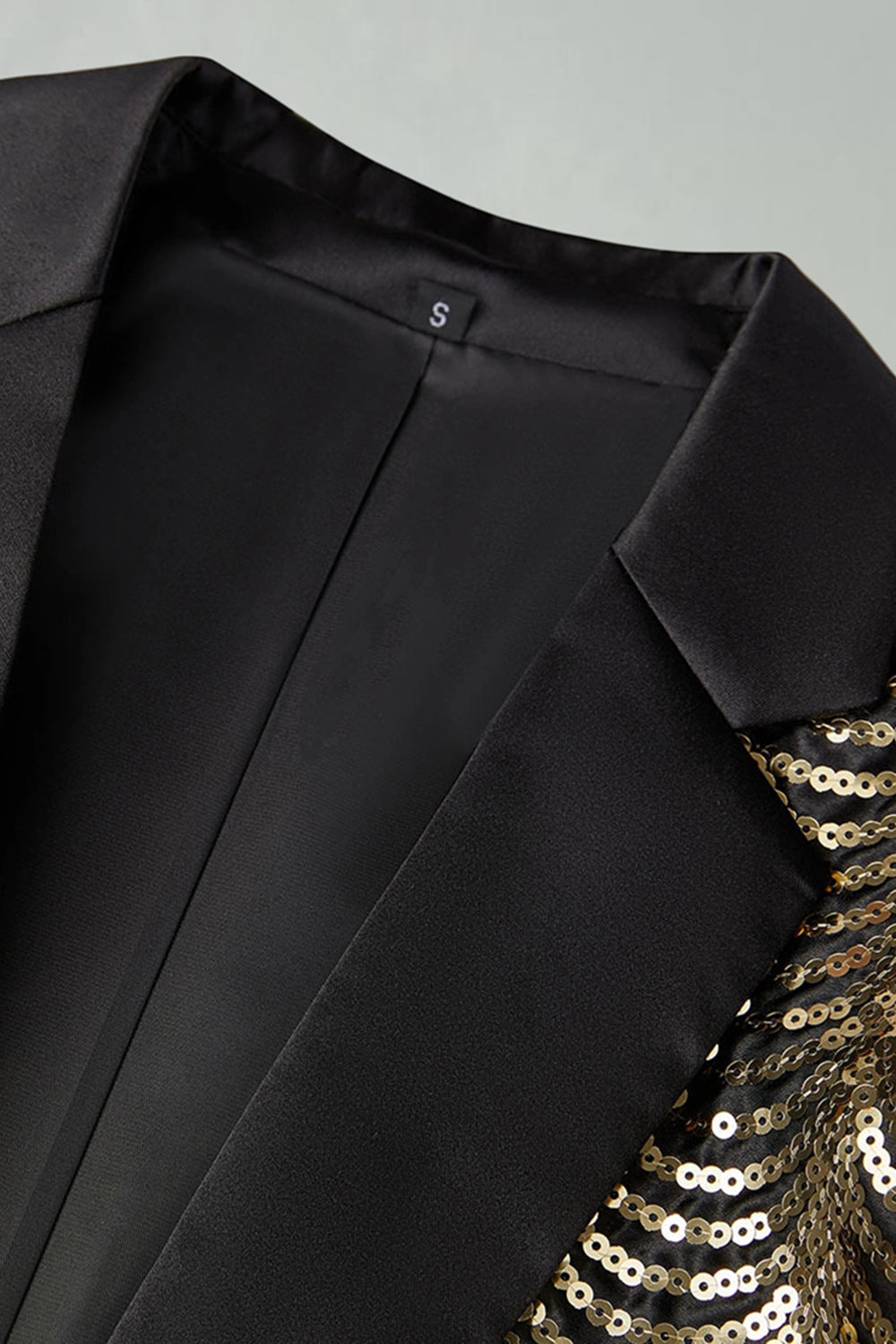 Solapa dorada con muescas brillantes de 2 piezas para hombres de baile de graduación