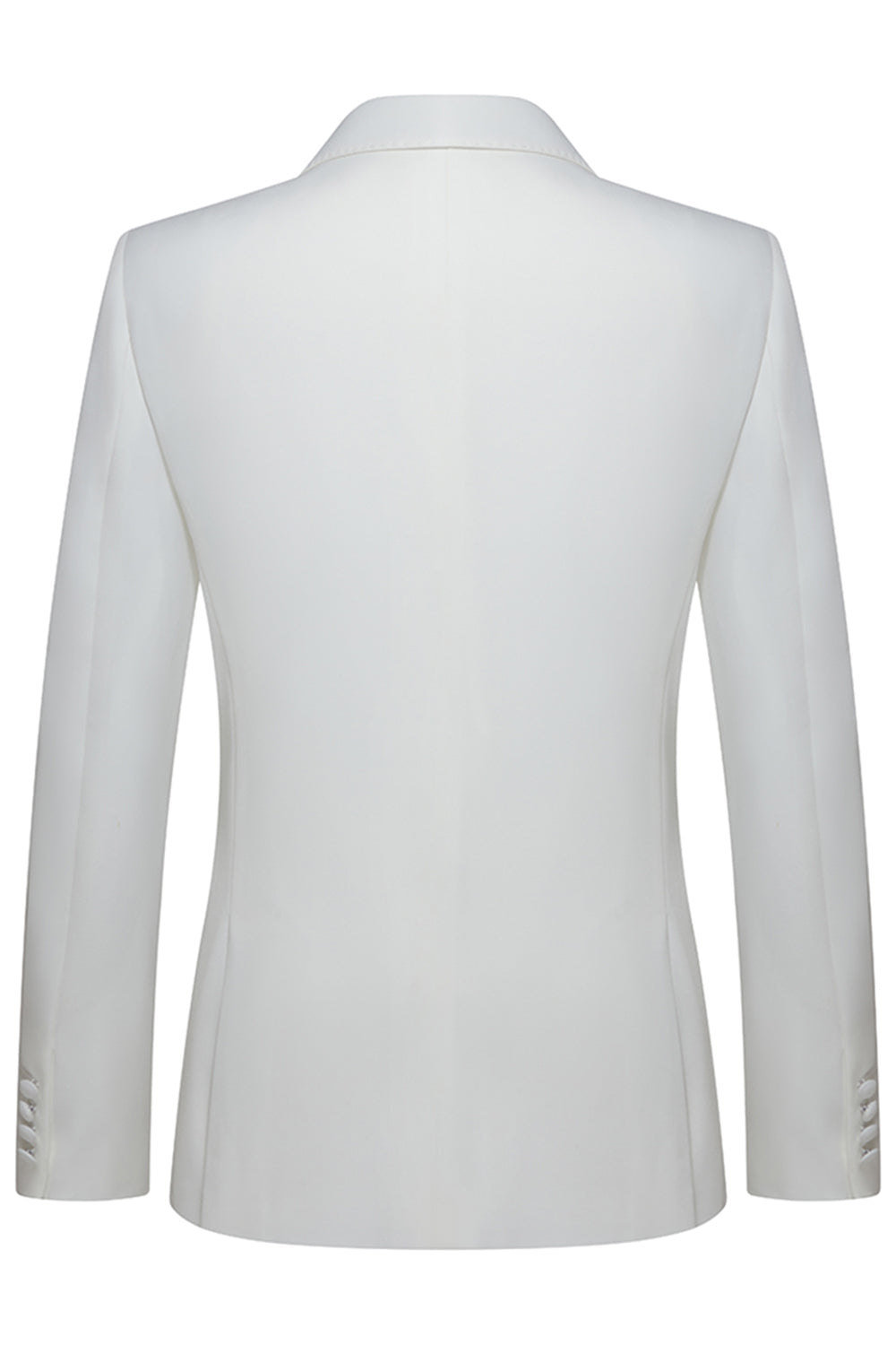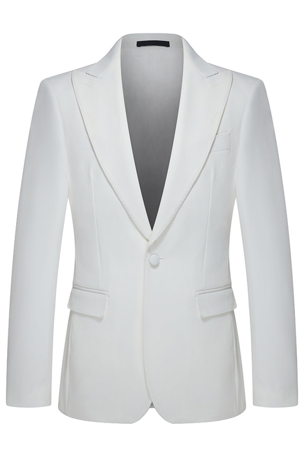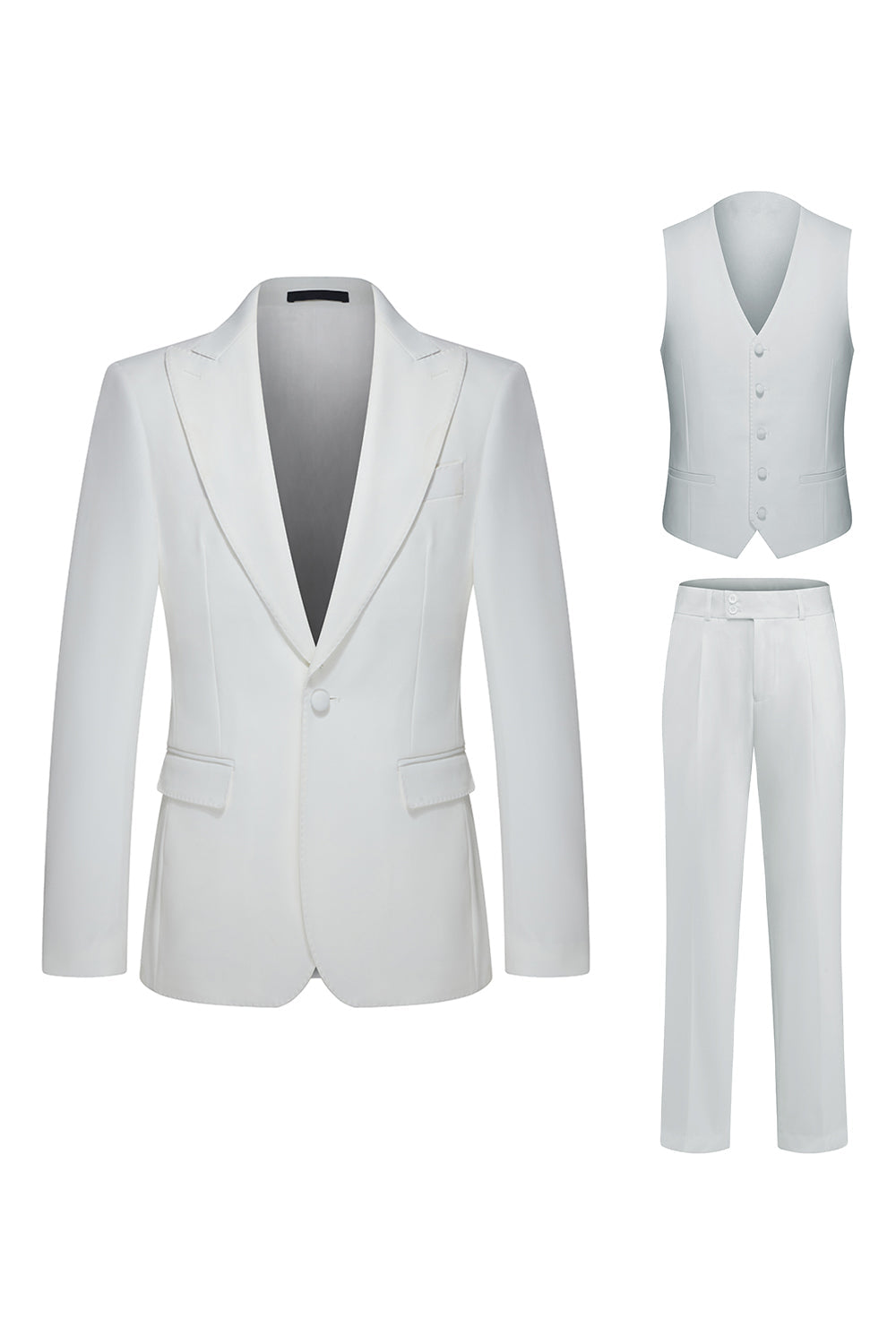 Traje de boda blanco de un botón de solapa Peak de 3 piezas