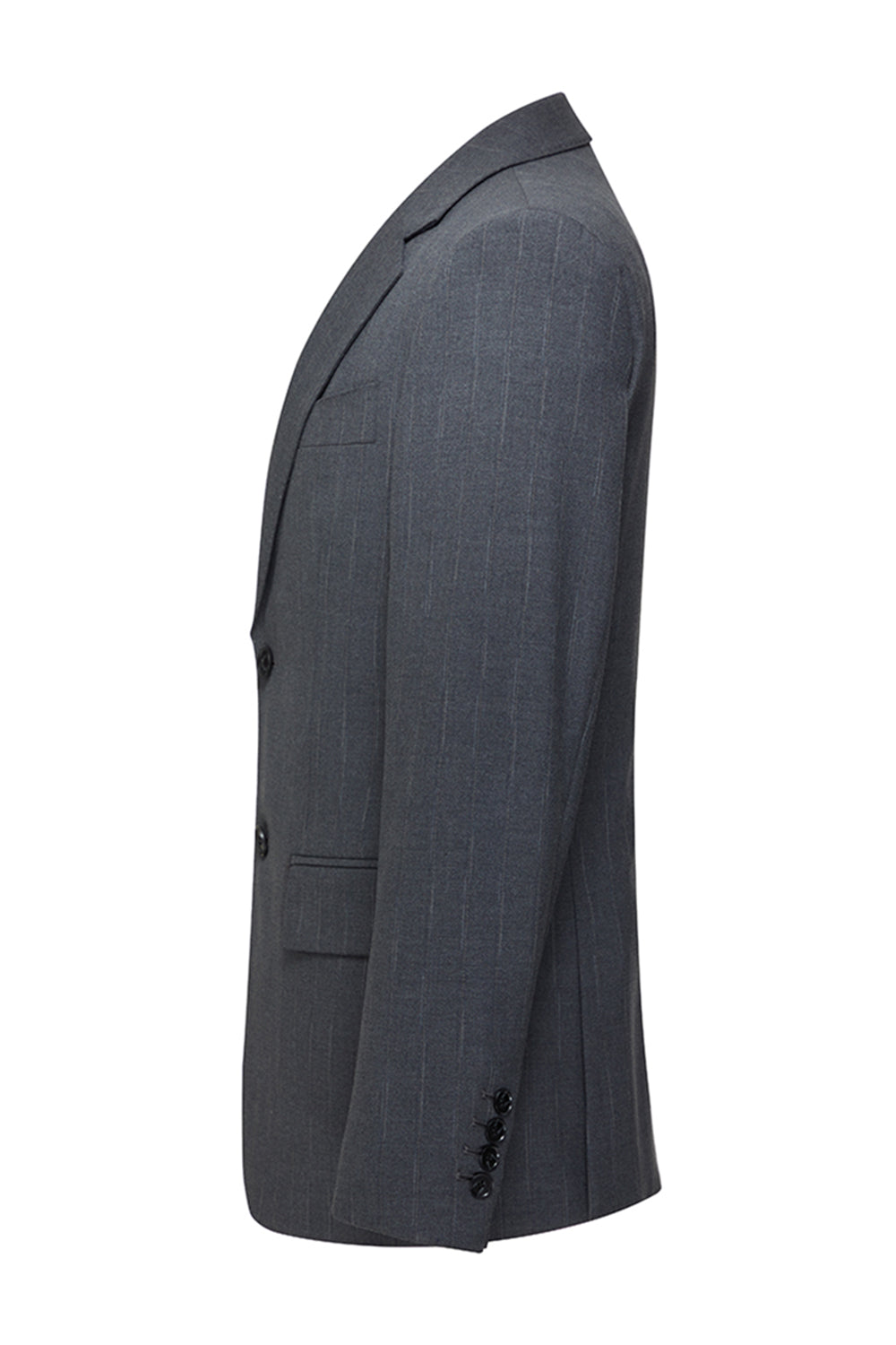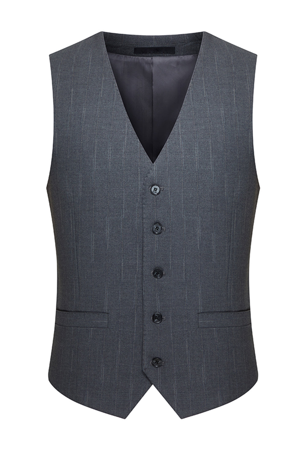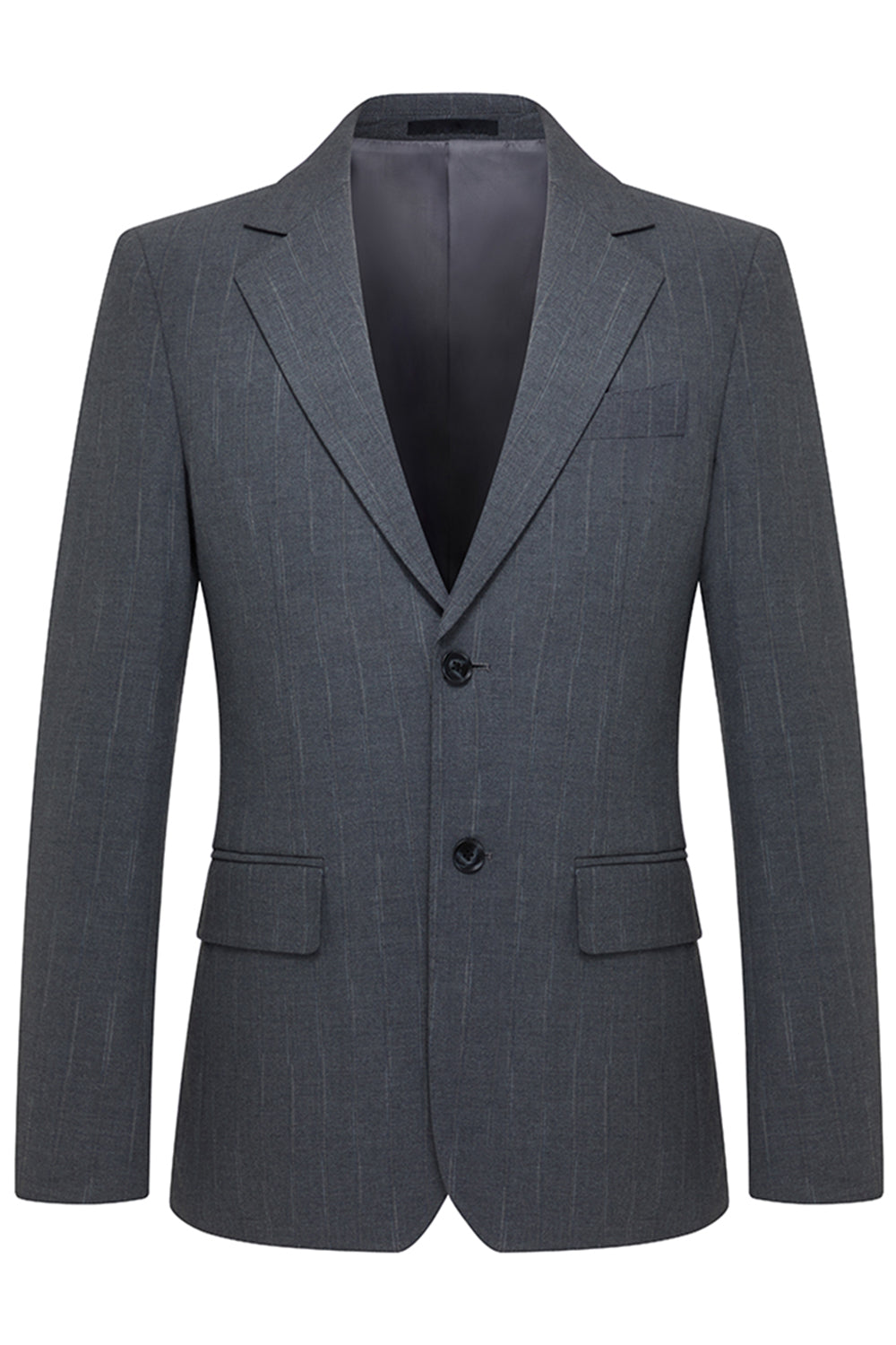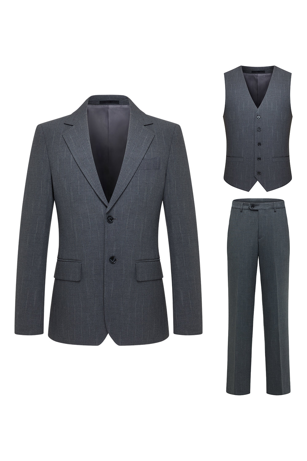Trajes de solapa de tres piezas grises con muescas de un solo pecho