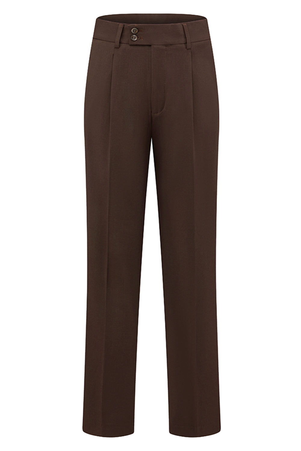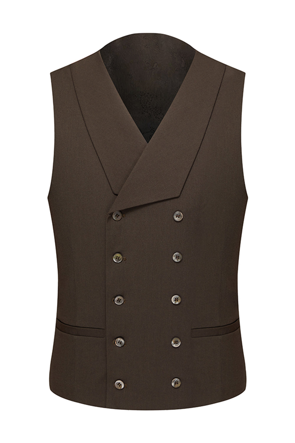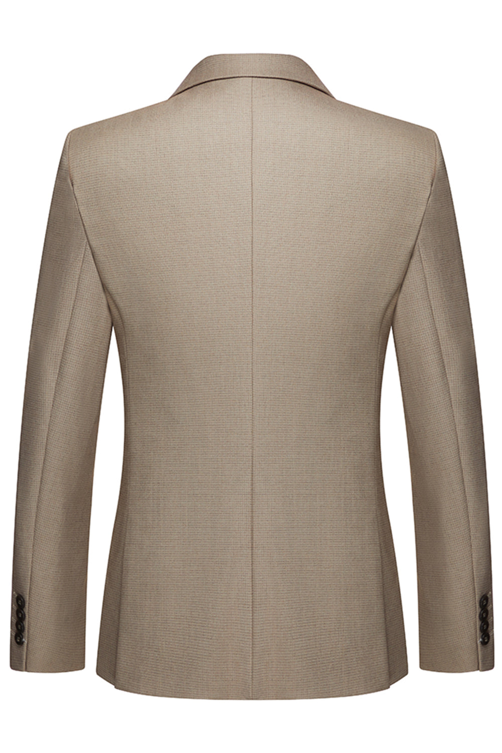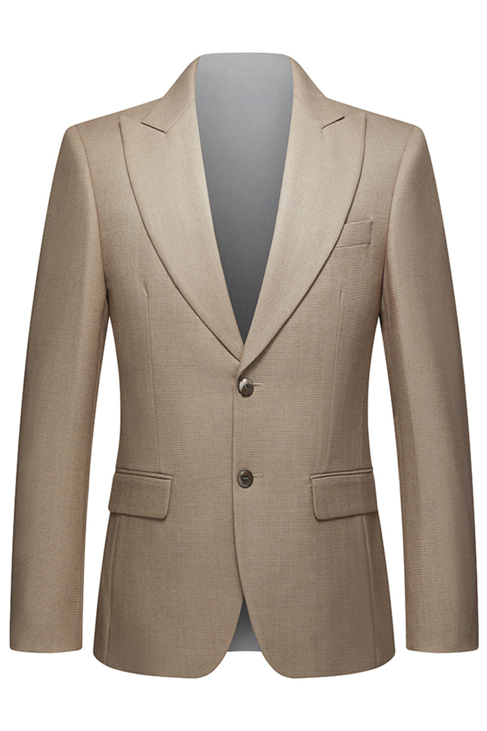 Trajes de tres piezas de solapa de pecho sencillo en solapa caqui Coffee Peak