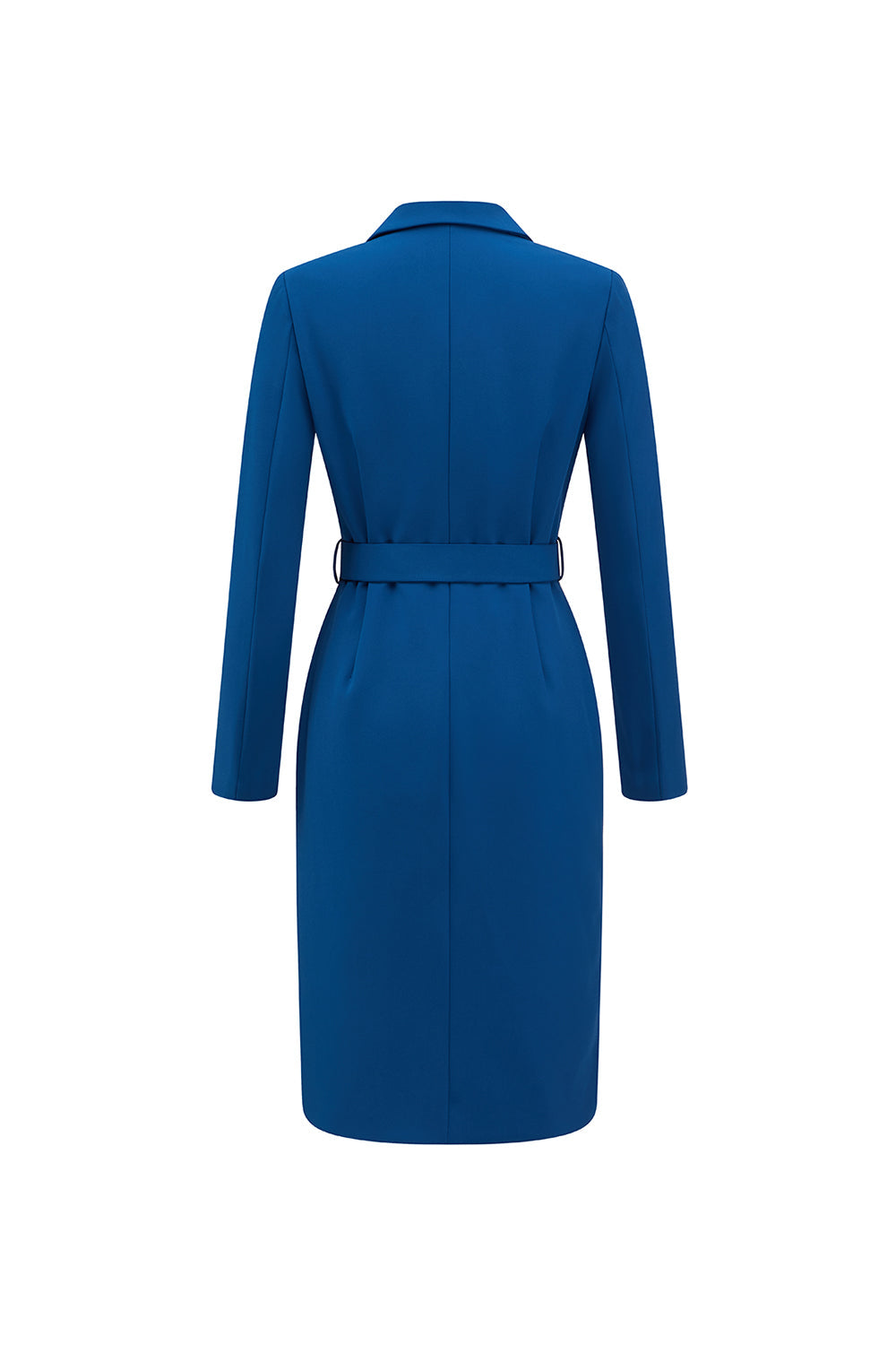 Vestido Blazer de doble botonadura con solapa con muescas en azul tinta y cinturón