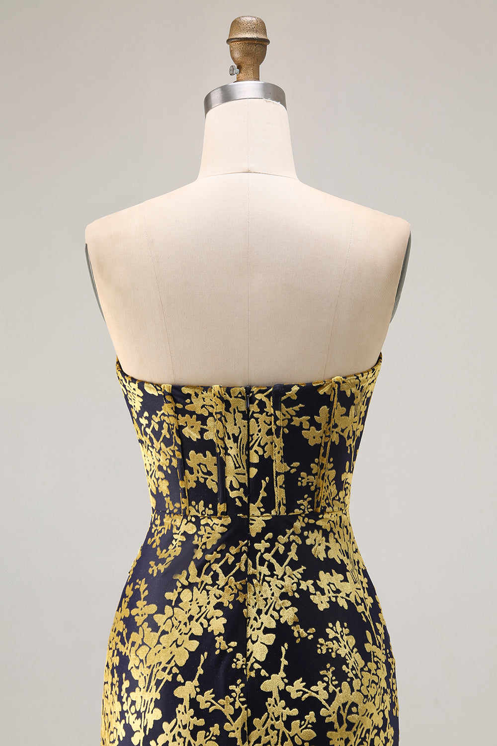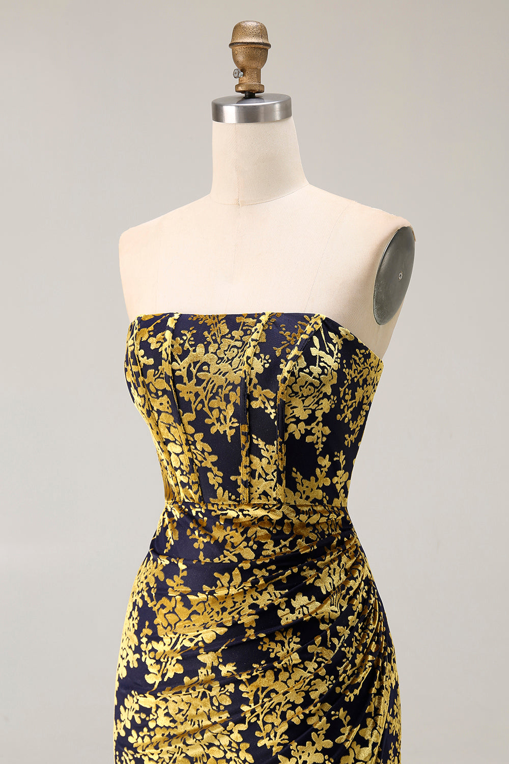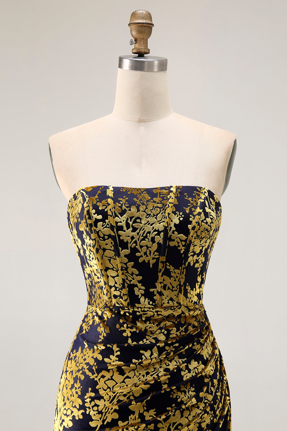 Vestido de dama de honor de terciopelo quemado con corsé sin tirantes burdeos con abertura