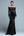 Vestido largo asimétrico negro de la madre de la novia con apliques de encaje