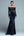 Vestido largo de fiesta de satén con recortes de sirena y corsé azul pavo real con abertura