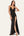 Vestido de fiesta navideño ajustado negro con hombros descubiertos con abertura