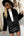 Sparkly Black Peak Lapel Selentejuelas Mujer Blazer con Plumas