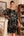 Blazer de fiesta negro con solapa de pico de doble botonadura para mujer