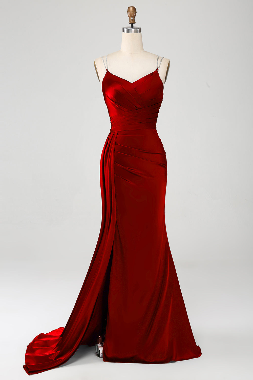 Vestido de fiesta largo largo de corsé largo con correas de espagueti de sirena azul marino con abertura
