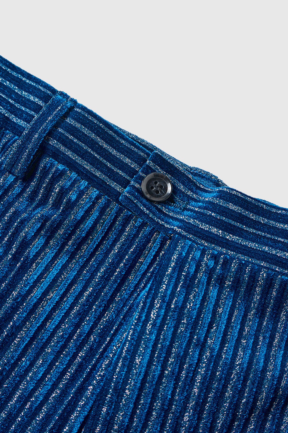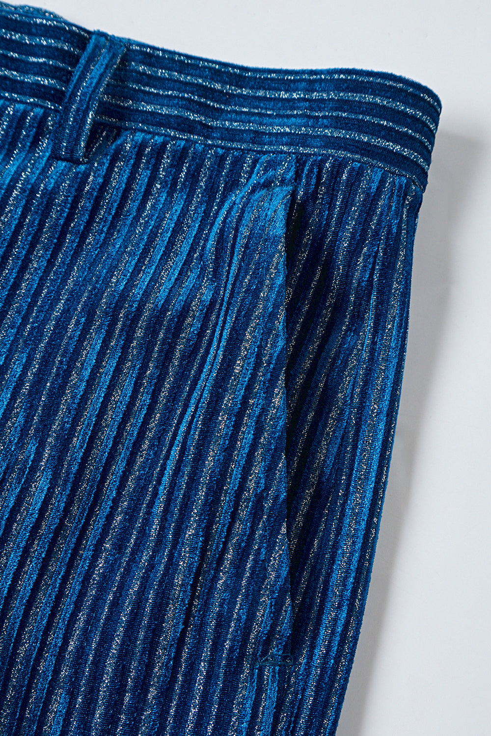 Trajes de fiesta de terciopelo azul tinta a rayas para mujer de 2 piezas