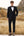 Traje formal de hombre negro de 3 piezas con solapa con muescas de botonadura sencilla