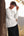 Camisa blanca de manga larga y cuello redondo para hombre