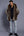 Abrigo de hombre de piel sintética recortada con cuello de solapa negro