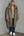 Abrigo de hombre largo de piel sintética con cuello de solapa marrón