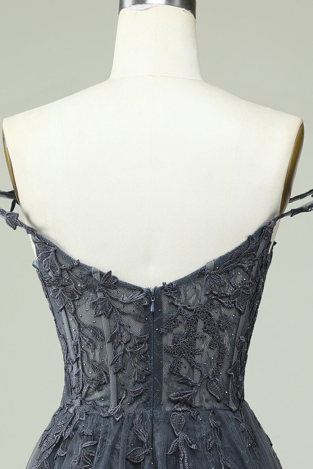 Lindo A Line Spaghetti Straps Grey Short Homecoming Dress con apliques