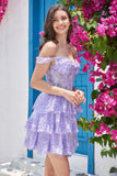A Línea Fuera del Hombro Negro Vestido de Cóctel Encaje
