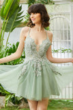 Tirantes de Espagueti Verde Vestido Corto de Cóctel